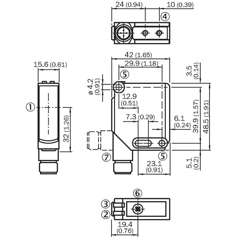 Capteur photoélectrique; Format: Parallélépipédique; Principe du capteur: Barrière; Principe de détection: Émetteur; Source d'émission: LED, Lumière rouge visible; Raccordement: Connecteur mâle M12, 4 pôles, orientable; Tension d'alimentation: 10-30Vdc; Dimensions (l x H x P): 15,6 mm x 48,5 mm x 42 mm; Matériau du boîtier: Métal; Indice de protection: IP66, IP67, IP69K; Température de fonctionnement: –40 °C ... +60 °C; Série: W12-3