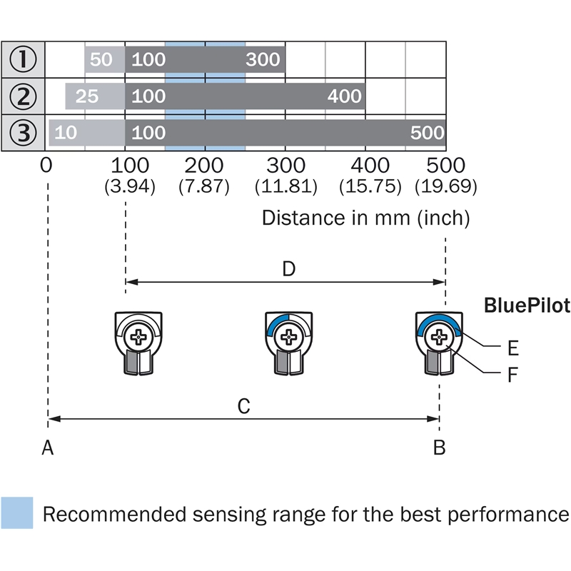 • BluePilot : outil d’alignement optique, réglage avec distance de commutation via bouton poussoir rotatif avec affichage optique de la distance de commutation ou via IO-Link
