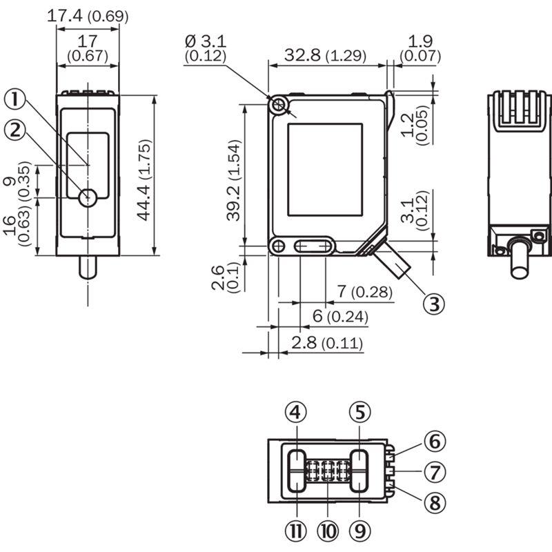 • Dimensions (l x H x P): 17,4 mm x 45,6 mm x 34,7 mm