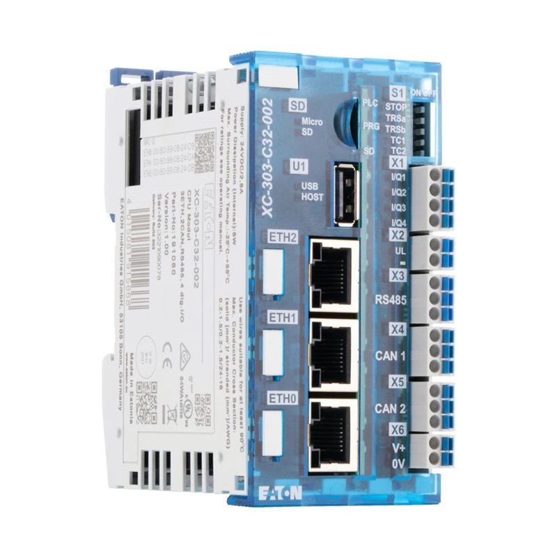 Automate modulaire Eaton XC303, API compact programmable, CODESYS 3, emplacement SD, USB, 3x Ethernet, 2x CAN, RS485, quatre entrées/sorties numériques