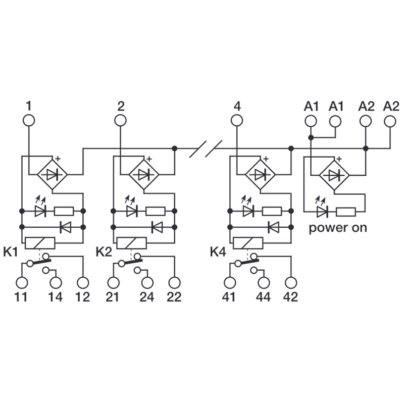 Module à relais électromécaniques; Tension d'alimentation nominale: 24 Vac & 24 Vdc; Courant de contact: 10 A (250 VAC) (résistif); Nombre de canaux: 4; Type des contacts: SPDT (1 échange); Circuit de protection: Diode, pont de diode redresseur; Raccordement: borniers à vis 2.5 mm² extractible; Montage: sur rail, placés côté à côté; Dimensions (l x h x p): 35 mm x 108 mm x 119 mm; Indice de protection: IP20 (IEC 529, EN60529); Température de service: -10...+50°C; Nombre de pièces par boîte: 1; Série: CRE