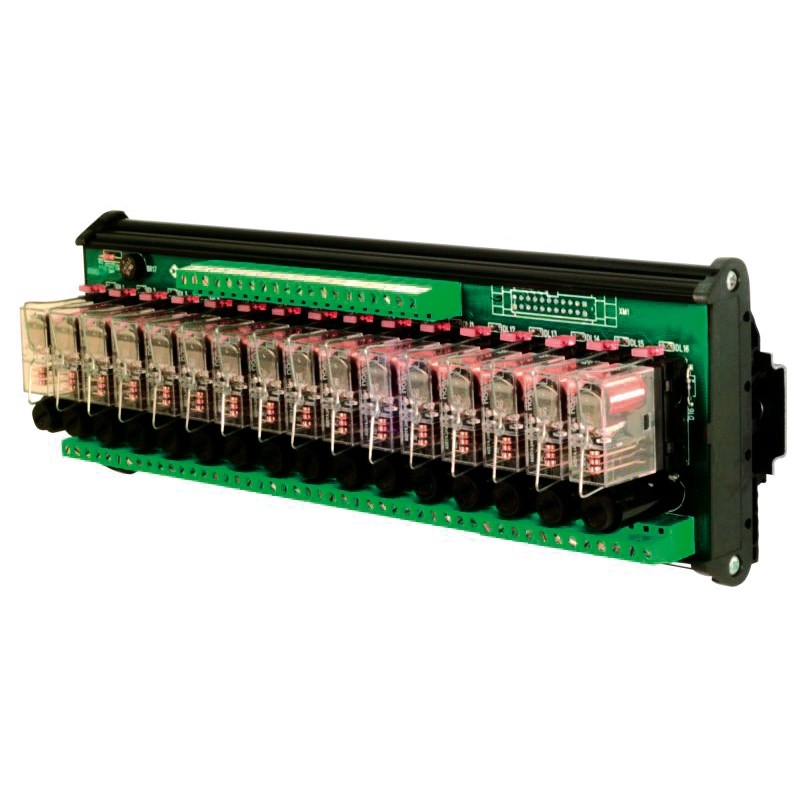 Module à relais électromécaniques; Tension d'alimentation nominale: 24 Vac/dc; Courant de contact: 12 A; Nombre de canaux: 16; Type des contacts: SPDT (1 échange); Montage: Sur rail, placés côté à côté; Dimensions (L x H x P): 250 mm x 93 mm x 75 mm; Nombre de pièces par boîte: 1; Série: R