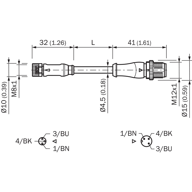 Connecteur / Câble de raccordement; Type: Câble de connexion; Raccordement A: Connecteur M8, femelle, droit, 3 pôles, codé A; Raccordement B: Connecteur M12, mâle, droit, 3 pôles, codé A; Câble: 2 m, 3 fils, PVC; Blindage: Non blindé; Domaine d'utilisation: Domaine de produit chimique; Homologations: UL