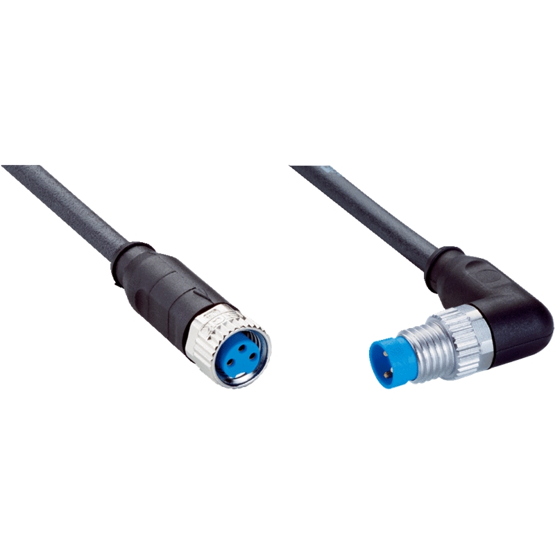 Connecteur / Câble de raccordement; Type: Câble de connexion; Raccordement A: Connecteur M8, femelle, droit, 3 pôles, codé A; Raccordement B: Connecteur M8, mâle, coudé, 3 pôles, codé A; Câble: 0,1 m, 3 fils, PUR, sans halogène; Blindage: Non blindé; Compatible chaîne porte-câble: Oui; Domaine d'utilisation: Domaine de l’huile/des lubrifiants; Homologations: UL