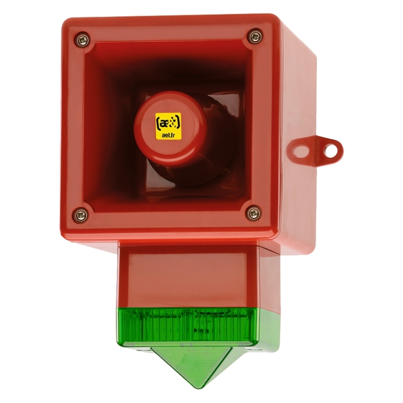Combiné sonore et lumineux pour amplifier le téléphone; Fonctionnement: Flash ; Type d'éclairage: Xénon; Puissance lumineuse en Joules: 5 Joule; Fréquence du Flash: 1 Hz (60 Flashs / min) ; Couleur de l'optique: Vert; Puissance Sonore en dB: 105 Décibel; Nbre de sons: 3 ; Mode de communication: Analogique ; Tension d'alimentation: 230 VAC; Dimensions: 130 mm x 216 mm x 132 mm; Matériau: ABS auto-extinguible ; Couleur (matériau): Rouge ; Indice de protection: IP66 ; Température d'Utilisation: -25 ... 55 °C; Poids: 0,95 Kg; Série: YotelFlash 5 V2