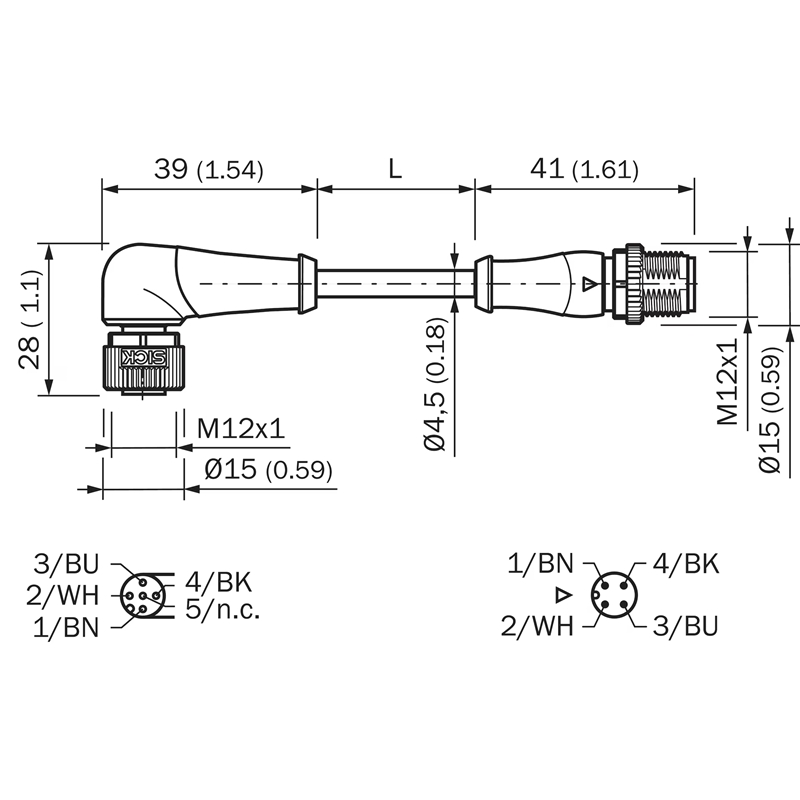 Connecteur / Câble de raccordement; Type: Câble de connexion; Type de signal: Capteur / Actionneur; Raccordement A: Connecteur M12, femelle, coudé, 4 pôles, codé A; Raccordement B: Connecteur M12, mâle, droit, 4 pôles, codé A; Câble: 10 m, 4 fils (4 x 0,34 mm²), PUR, sans halogène, noir; Blindage: Non blindé; Compatible chaîne porte-câble: Oui (10 MM), 10 m/s²; Tension de mesure: max. 250 V DC; Charge électrique: 4 A; Indice de protection: IP65 / IP66K / IP67; Température de service:- En mouvement: –25 °C ... +80 °C- En position fixe: –40 °C ... +80 °C- Mode chaîne porte-câble: –25 °C ... +80 °C- Tête: –25 °C ... +85 °C; Domaine d'utilisation: Domaine de l’huile/des lubrifiants; Homologations: CE, UL