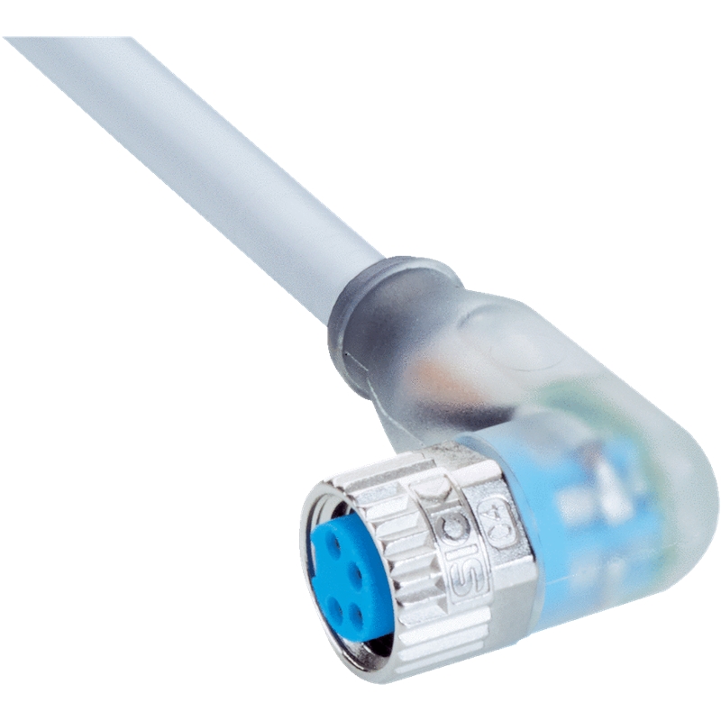• Mode de raccordement A: Connecteur M8, femelle, coudé, 4 pôles avec LED, codé A
