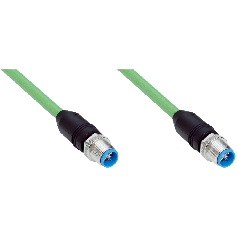 Câble de connexion, M12-X, Mâle, Droit, 8 pôles / M12-X, Mâle, Droit, 8 pôles; Câble Blindé, 4x2x0,14mm², Vert, 5m