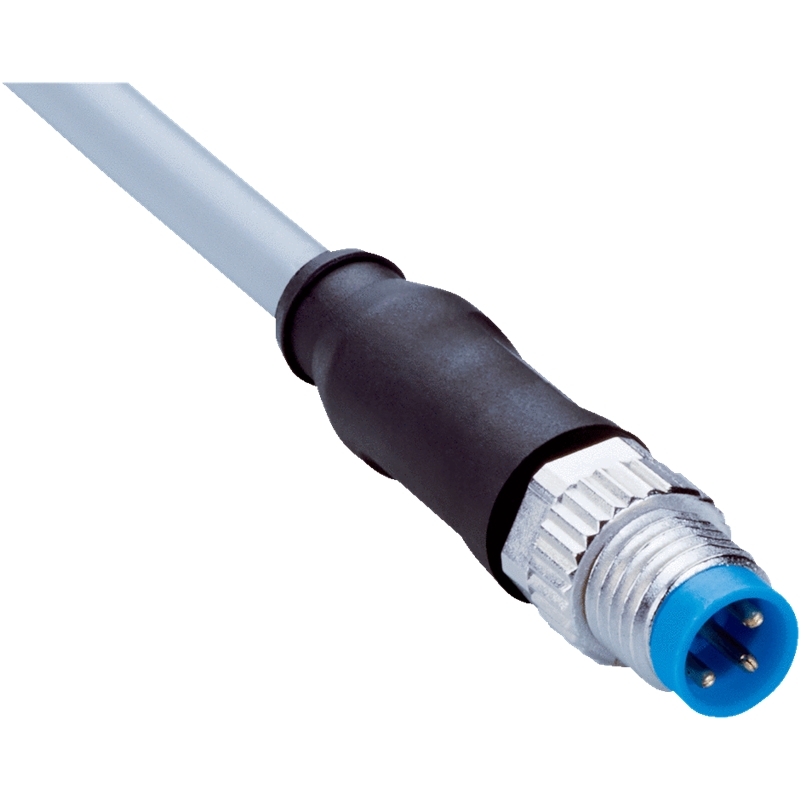Connecteur / Câble de raccordement; Type: Câble de connexion, M8 x 1; Type de signal: Capteur / Actionneur; Raccordement A: Connecteur M12, femelle, droit, 3 pôles, codé A; Raccordement B: Extrémité de câble libre; Câble: 3 m, 3 fils (3 x 0.25mm²), PVC, gris; Blindage: Non blindé; Compatible chaîne porte-câble: Oui (2 MM); Tension de mesure max.: 60 V DC; Charge électrique: 4 A; Classe de protection: IP65, IP66K, IP67; Température de service:- En mouvement: –5 °C ... +80 °C - En position fixe: –30 °C ... +80 °C -Tête: –25 °C ... +85 °C; Domaine d'utilisation: Domaine de produit chimique; Homologations: UL