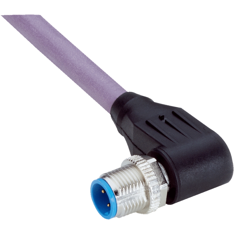 Connecteur / Câble de raccordement; Type : Câble de connexion; Mode de raccordement A : Connecteur M12, mâle, coudé, 4 pôles, codé B; Mode de raccordement B : Extrémité de câble libre; Câble : 5 m, 2 fils, PUR, sans halogène; Domaine d'utilisation : Mode chaîne porte-câble, Domaine de l’huile/des lubrifiants, Résistant aux UV, Résistant aux à l’ozone; Homologations : CE, UL; Description : Bus de terrain, blindé, PROFIBUS DP