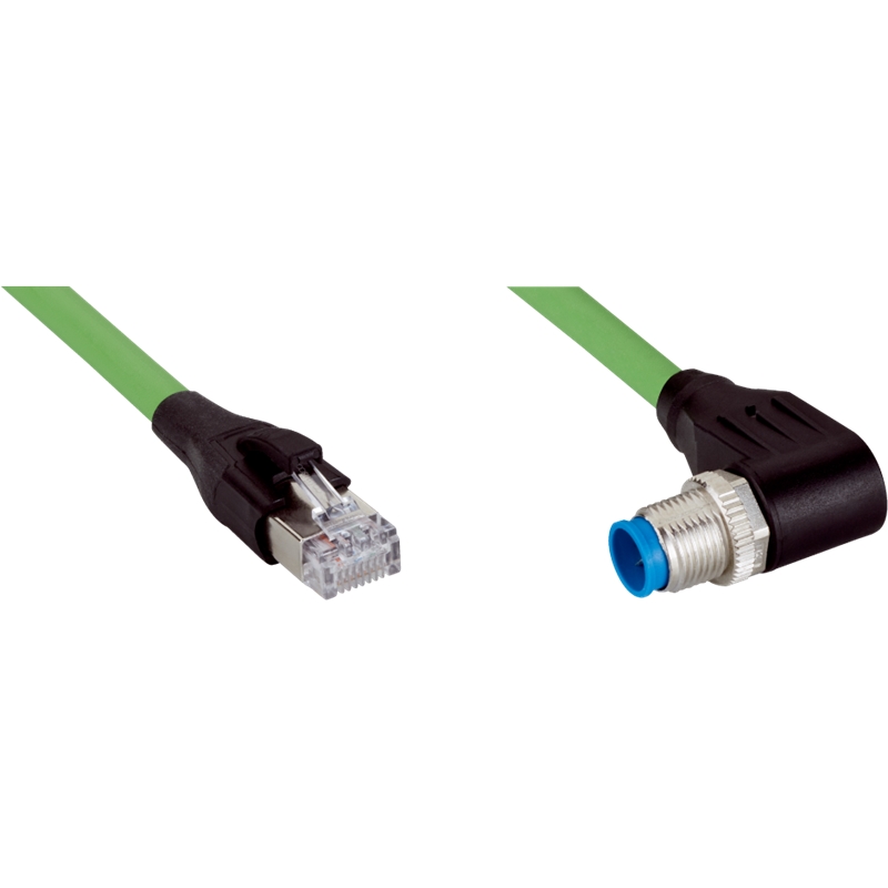 Connecteur et câble; Câble Ethernet et de bus de terrain industriels; Type de signal: Ethernet, Gigabit Ethernet; Raccordement A: Connecteur mâle, M12, 8 pôles, coudé, Codage X; Raccordement B: Connecteur mâle, RJ45, 8 pôles, droit; Câble: 0,5 m, 8 fils, AWG26, PUR, sans halogène; Blindage: Blindé