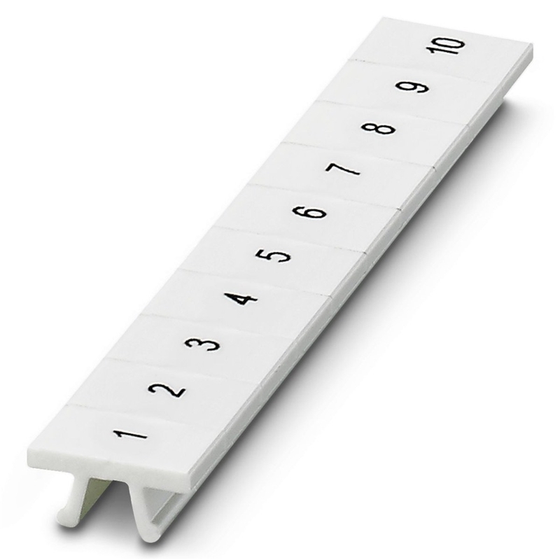 Repérage ZB, 10 éléments, impression horizontale avec la numérotation continue : 1 ... 10, blanc, pour bloc de jonction au pas de : 6,2 mm, type de montage: encliqueter