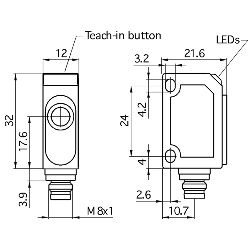 Détecteur à ultrasons; Format: Parallélépipédique; Plage de mesure: 20...250 mm; Portée Sn: 150 mm; Mode de fonctionnement: - détecteur de proximité/mode réflexion, - barrière à réflexion, - mode fenêtre; Réglage: Teach; Type de commutation: PNP; Sortie de commutation: Contact NO/NF; Temps de réponse: 24 ms; Fréquence de commutation: 25 Hz; Synchronisation: Oui; Raccordement: Connecteur M8 à 4 pôles; Tension de service Ub: 20-30Vdc; Matériau du corps: ABS; Indice de protection: IP67 (selon EN 60529); Température de service: -25° C à +70° C; Série: zws